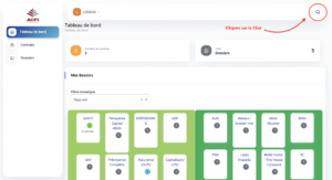 Pour échanger en direct avec votre courtier, il vous suffit de cliquer en haut à droite de l’écran pour ouvrir la fonctionnalité « chat ».